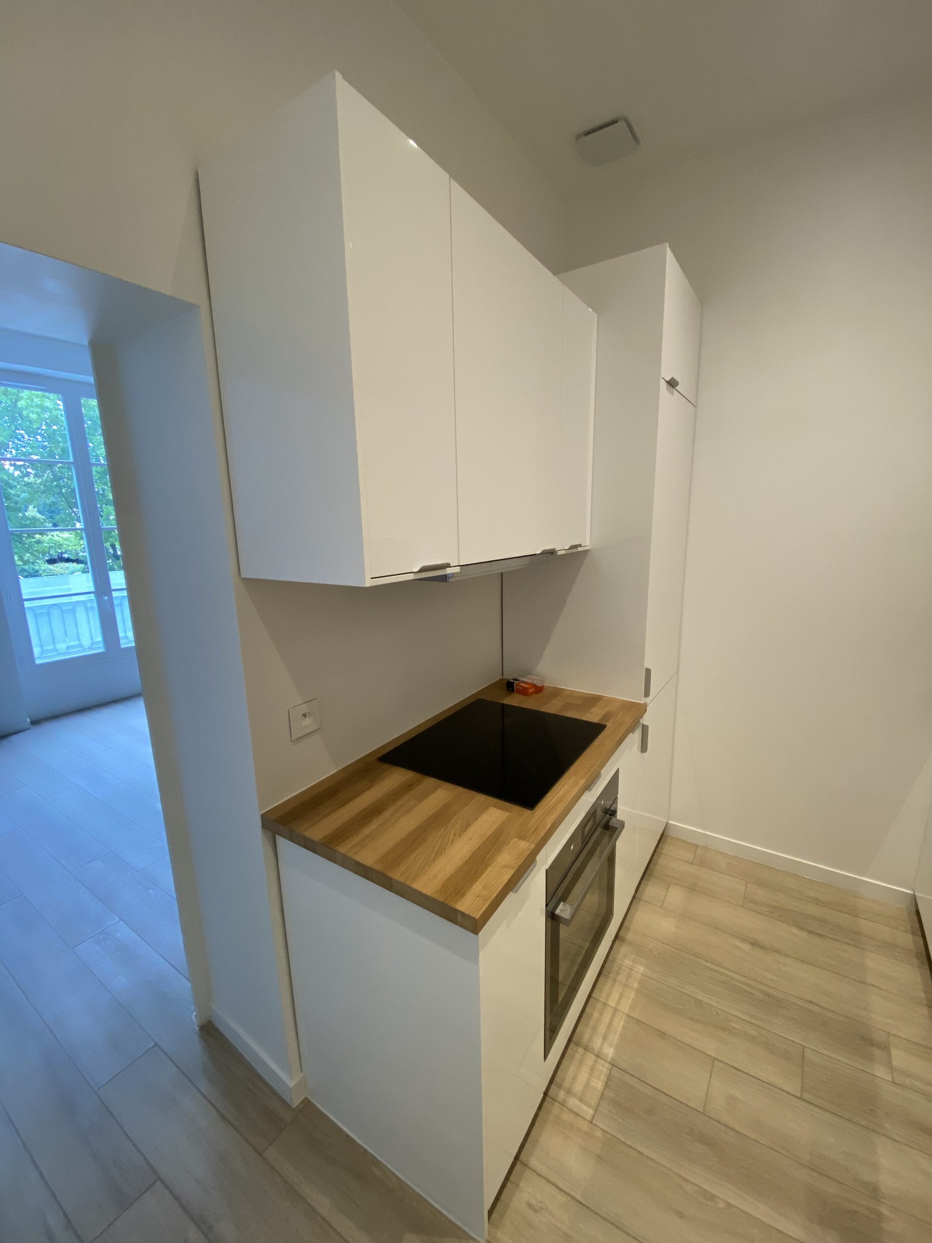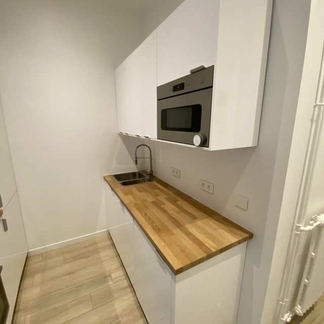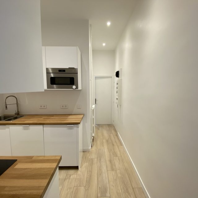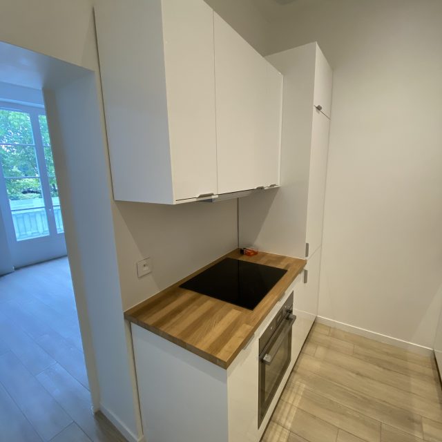 Satisfait du premier chantier que nous avions mené, notre client nous a renouvelé sa confiance pour la réalisation des travaux et la rénovation complète de cet appartement de 40m2 situé en plein cœur de Boulogne.
