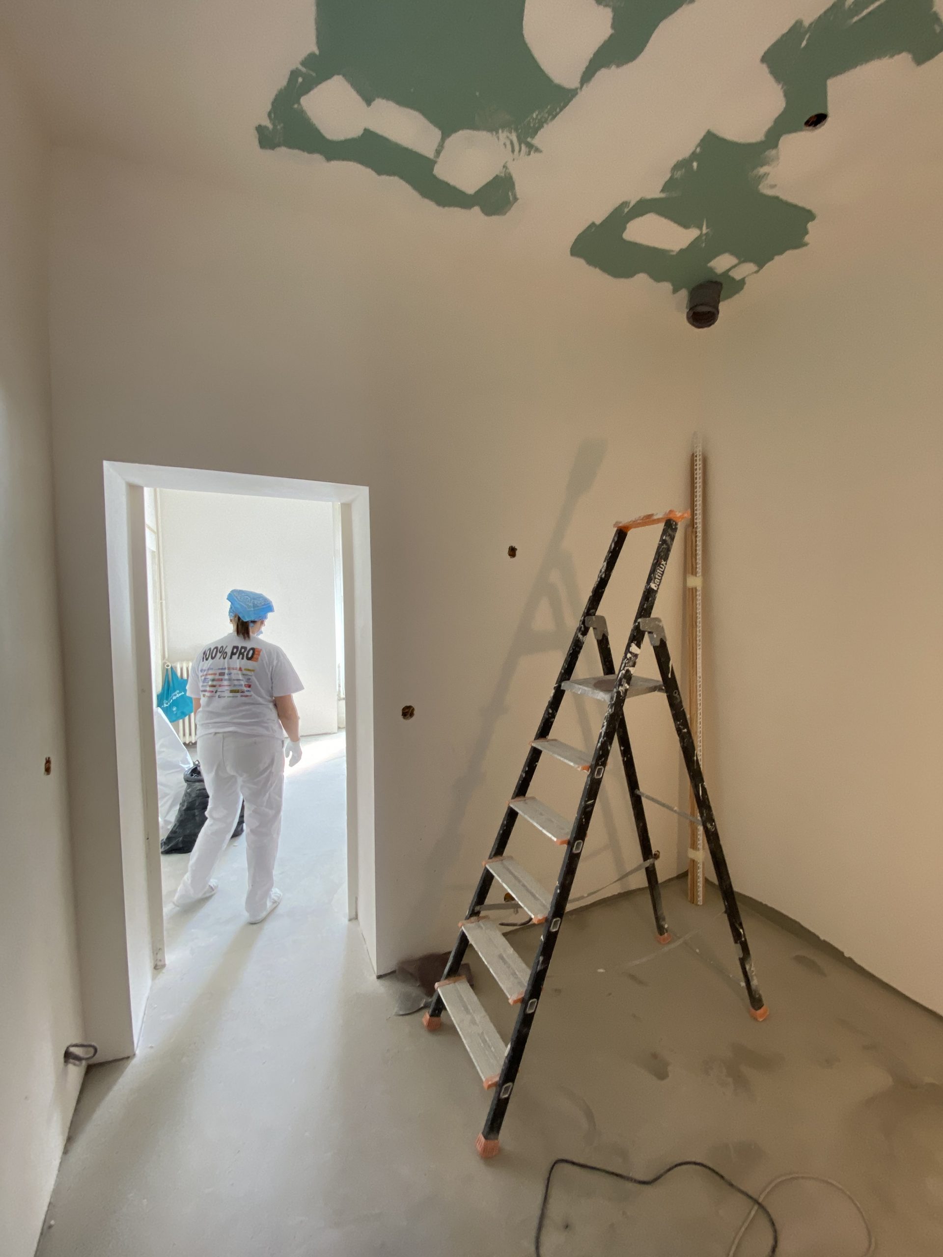 Au-delà des travaux de rénovation, nous avons dû réaménager et optimiser des espaces de vie dédiés, un salon séjour, une cuisine aménagée, une chambre avec une salle de bain et un wc séparé.