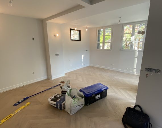 Ce chantier regroupe l’ensemble de notre savoir-faire en termes de travaux, en effet, dans cette maison nous avons créé une suite parentale comprenant un dressing, une salle de bain et une terrasse aménagée végétalisée, trois chambres, un bureau, deux salles de bain, une cuisine agencée et aménagée sur mesure, un salon séjour avec cheminé.