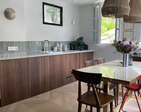 Aucune intervention n’avait été réalisée dans ce bien depuis les années soixante. Avant d’engager les travaux, nous avons accompagné nos clients qui ont repensé son aménagement et son agencement intérieur/extérieur pour se réapproprier les lieux.