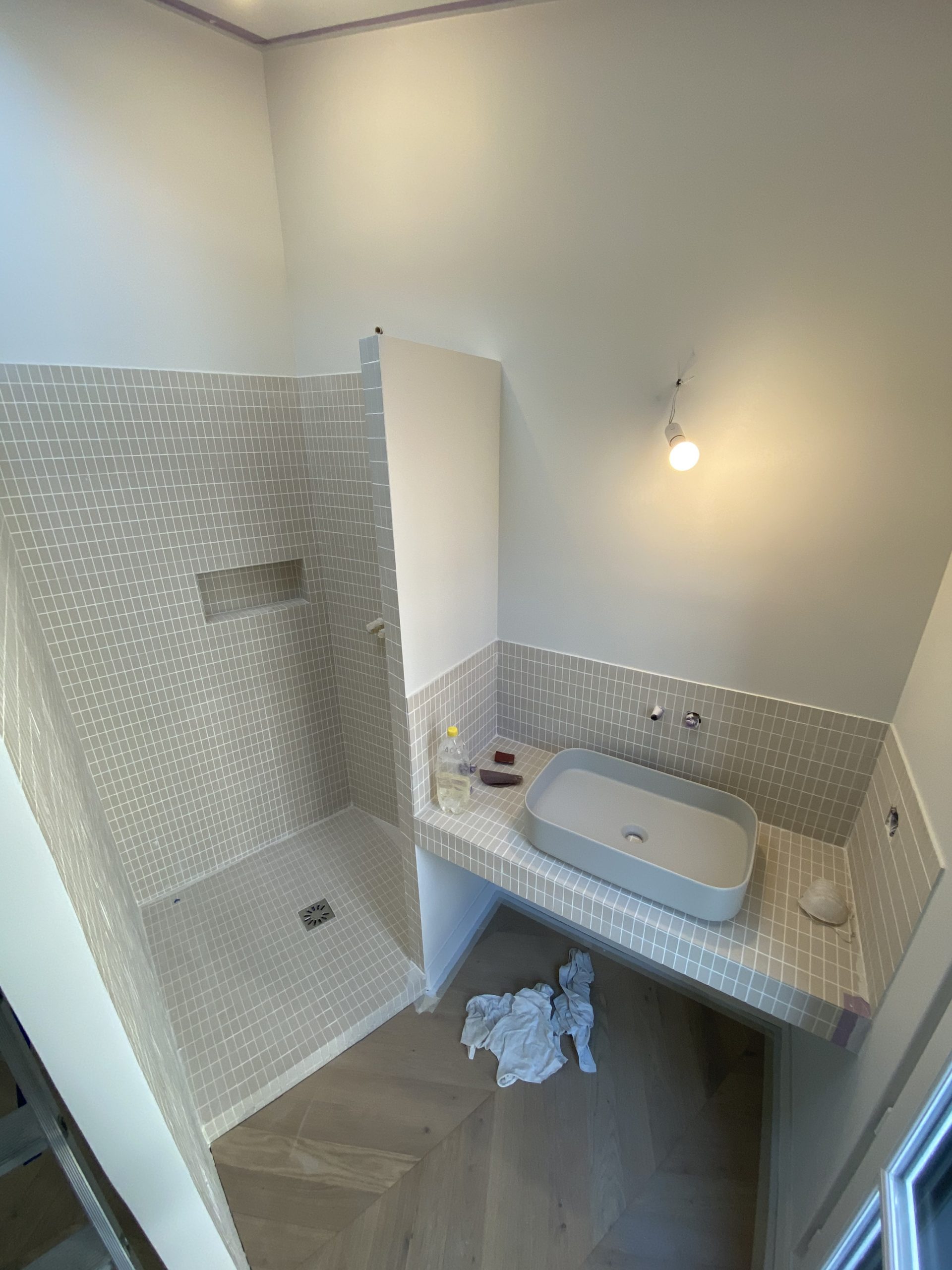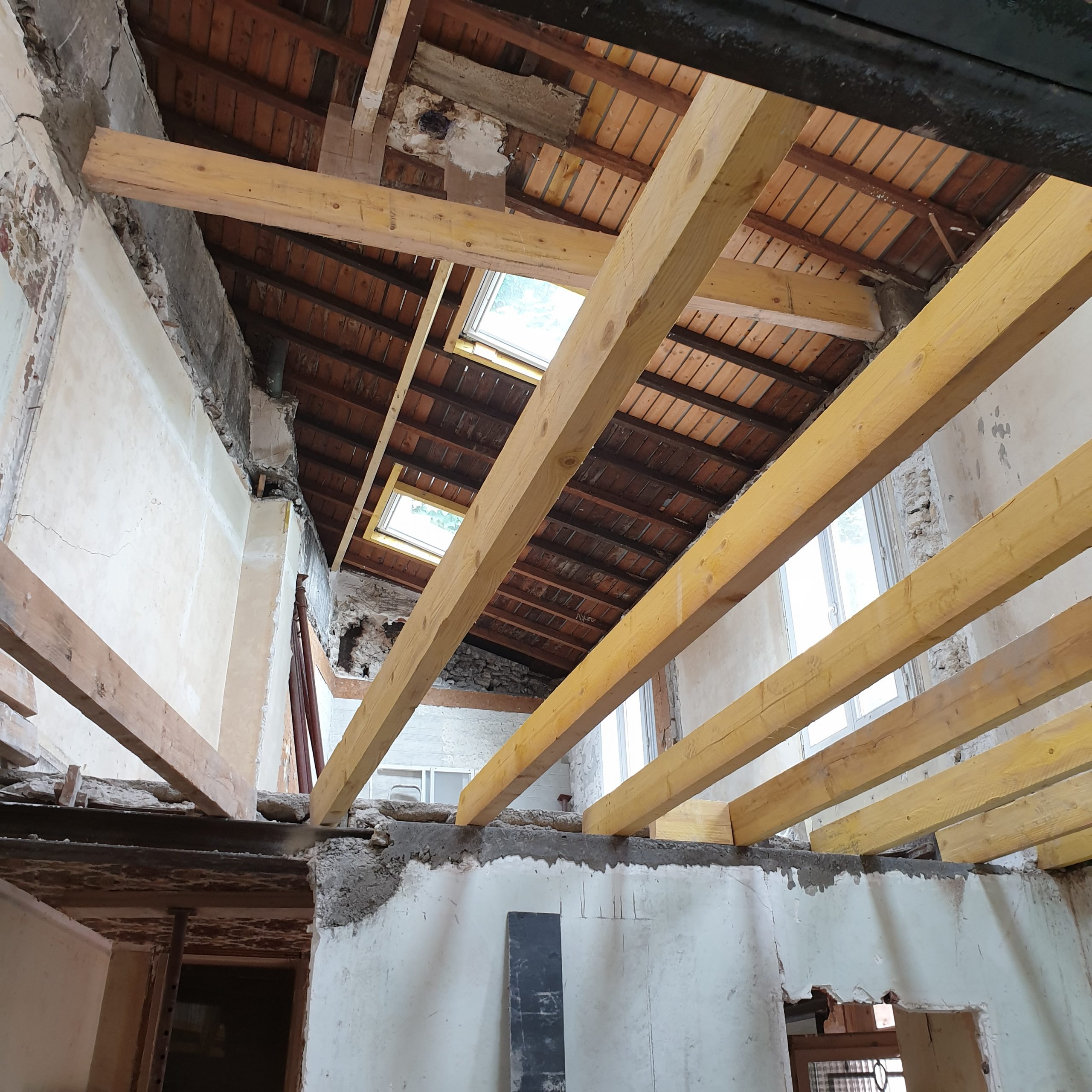 Ce chantier regroupe l’ensemble de notre savoir-faire en termes de travaux, en effet, dans cette maison nous avons créé une suite parentale comprenant un dressing, une salle de bain et une terrasse aménagée végétalisée, trois chambres, un bureau, deux salles de bain, une cuisine agencée et aménagée sur mesure, un salon séjour avec cheminé.